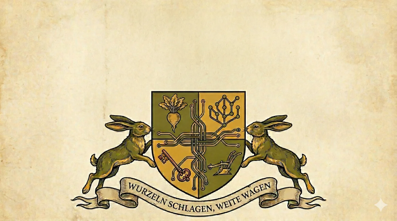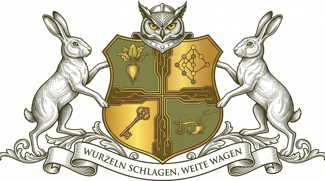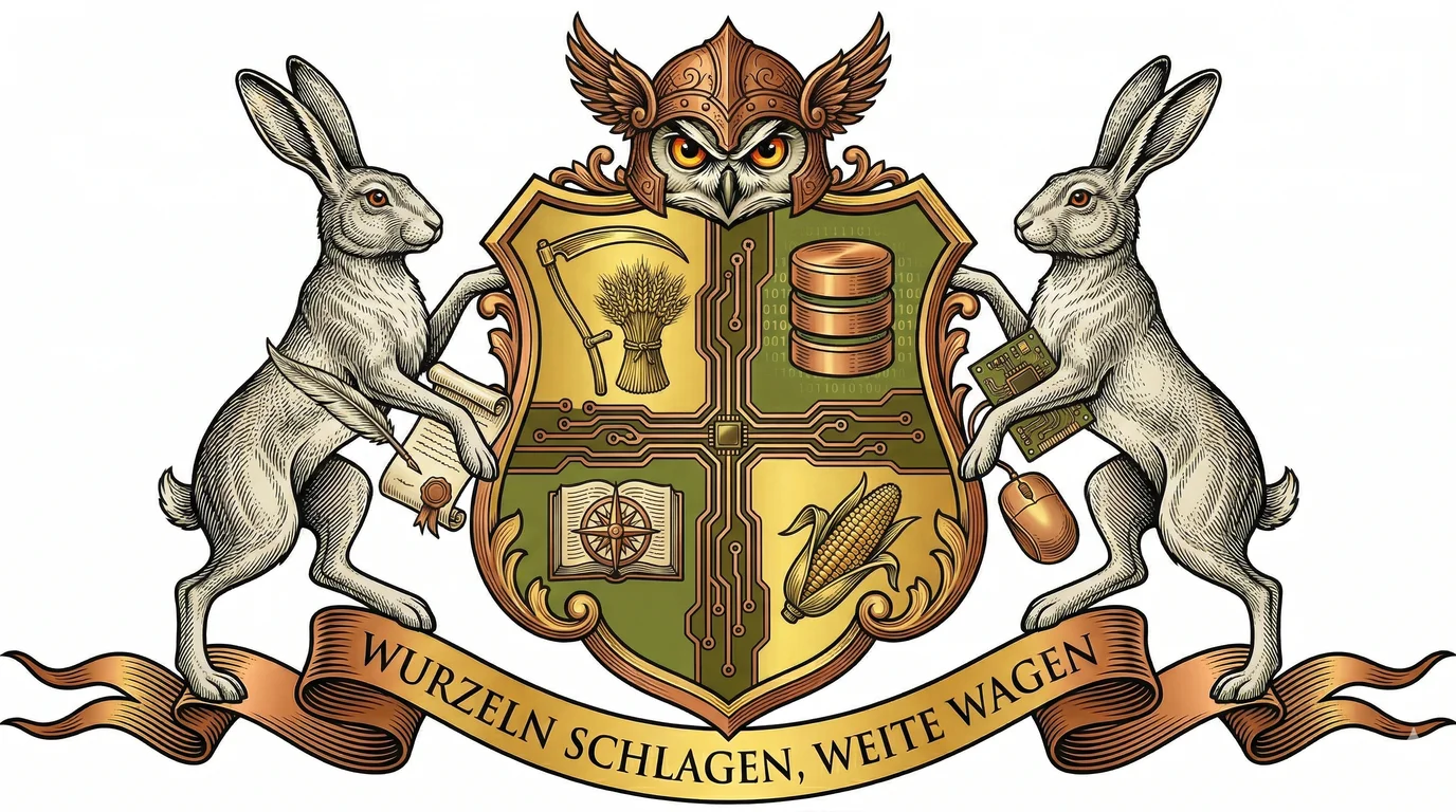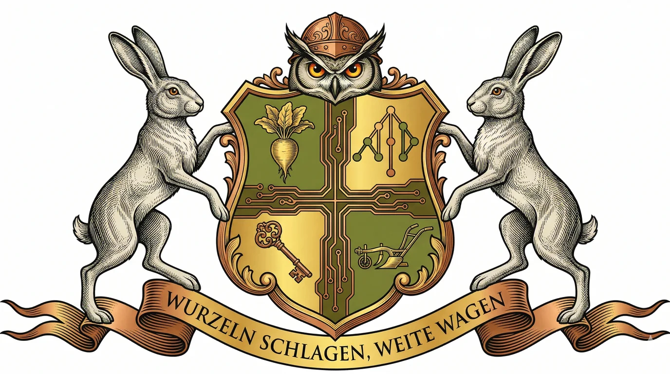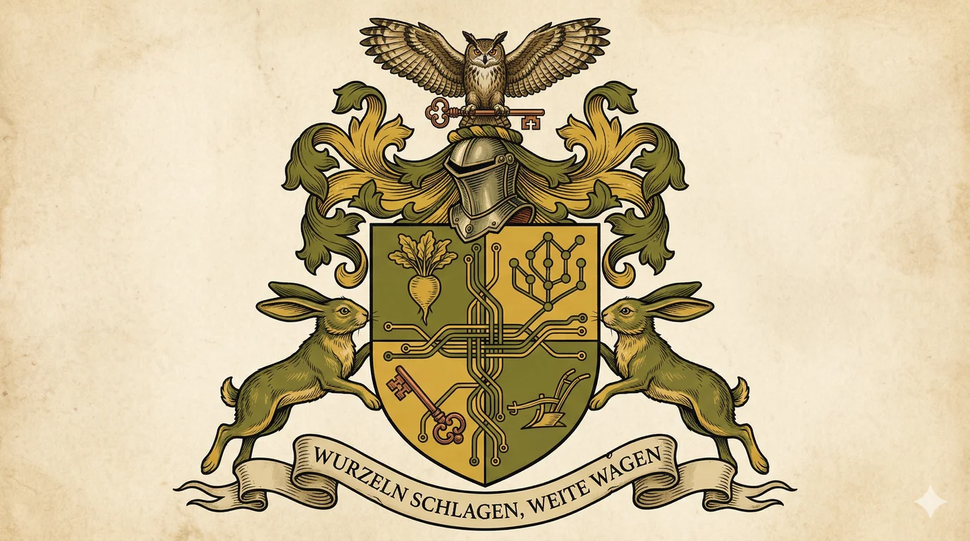Our Familienwappen represents the balance between our deep agricultural heritage and our modern aspirations in technology and beyond. Each element tells a story of growth, stability, and bold vision.